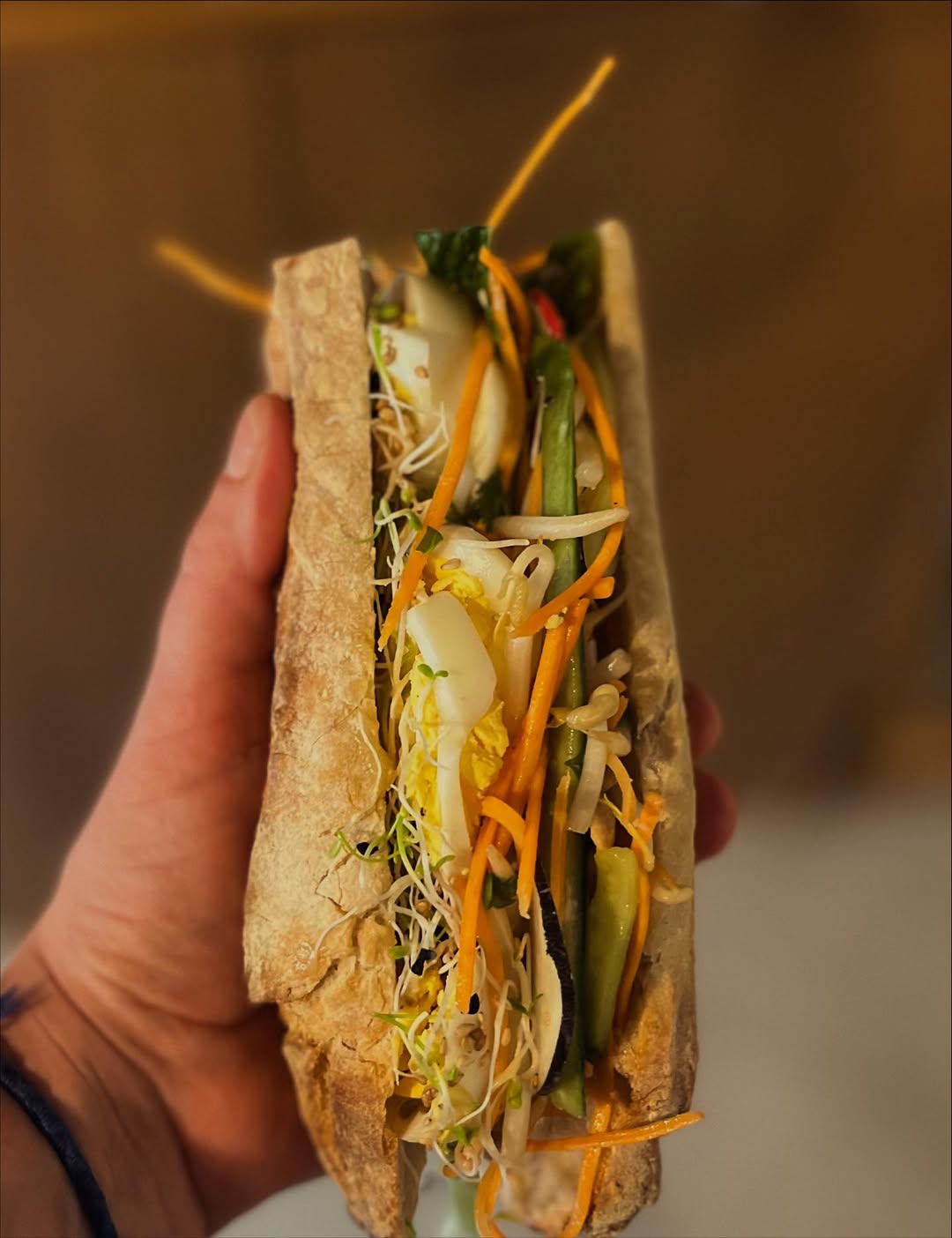 On sent une adresse qui est, plus que les deux autres, à destination du quartier - et du déjeuner. Il faut admettre qu'on ne peut pas bruncher tous les jours. Ni manger des pizzas tous les midis - sauf si on est une tortue et qu'on vit dans les égouts. Donc Grains. On y sert, il faut le préciser, uniquement à emporter. C'est un petit local qui est surtout une jolie cuisine, montée en un mois cet été, et où s'affaire en ce moment, Marion herself. Elle y concocte une offre simple qui change toutes les semaines : deux sandwichs, une salade, des gâteaux. On a vu passer un genre de banh mi végétarien dans une baguette de chez Cocol ; un pain de campagne généreusement garni de noix et de mozzarella ; une salade de lentilles ; une autre aux petites pâtes rondes (accompagnée d'olives, de Bresaola et d'épinards) ; enfin un banana bread. À son habitude, Marion tient les prix en laisse : dix balles (avec un joli cookie et un café filtre de chez Placid - vous avez vu combien coûte ce genre de chose plus bas dans les Pentes ?). La vogue des marrons vient de débuter, c'est l'occasion de passer.