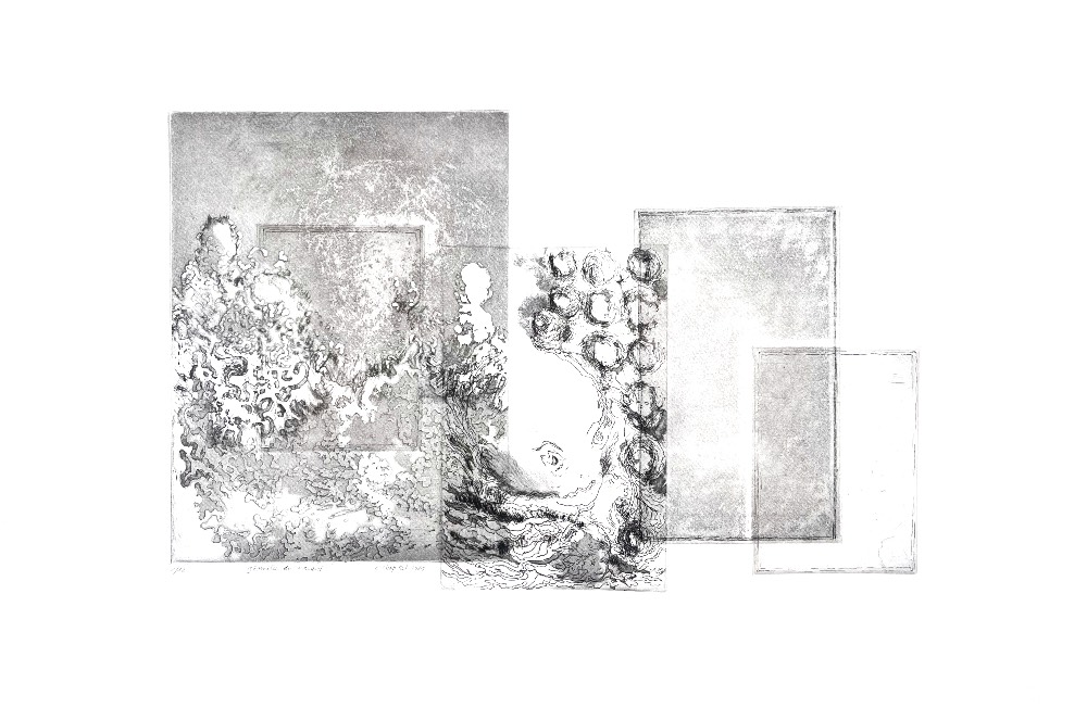 Photo : Christian Lhopital, Géomètre du hasard, 2025, eau-forte, aquatinte, brunissoir et sucre, 34 x 52 cm 12 ex. / vélin d'Arches, URDLA éditeur & imprimeur