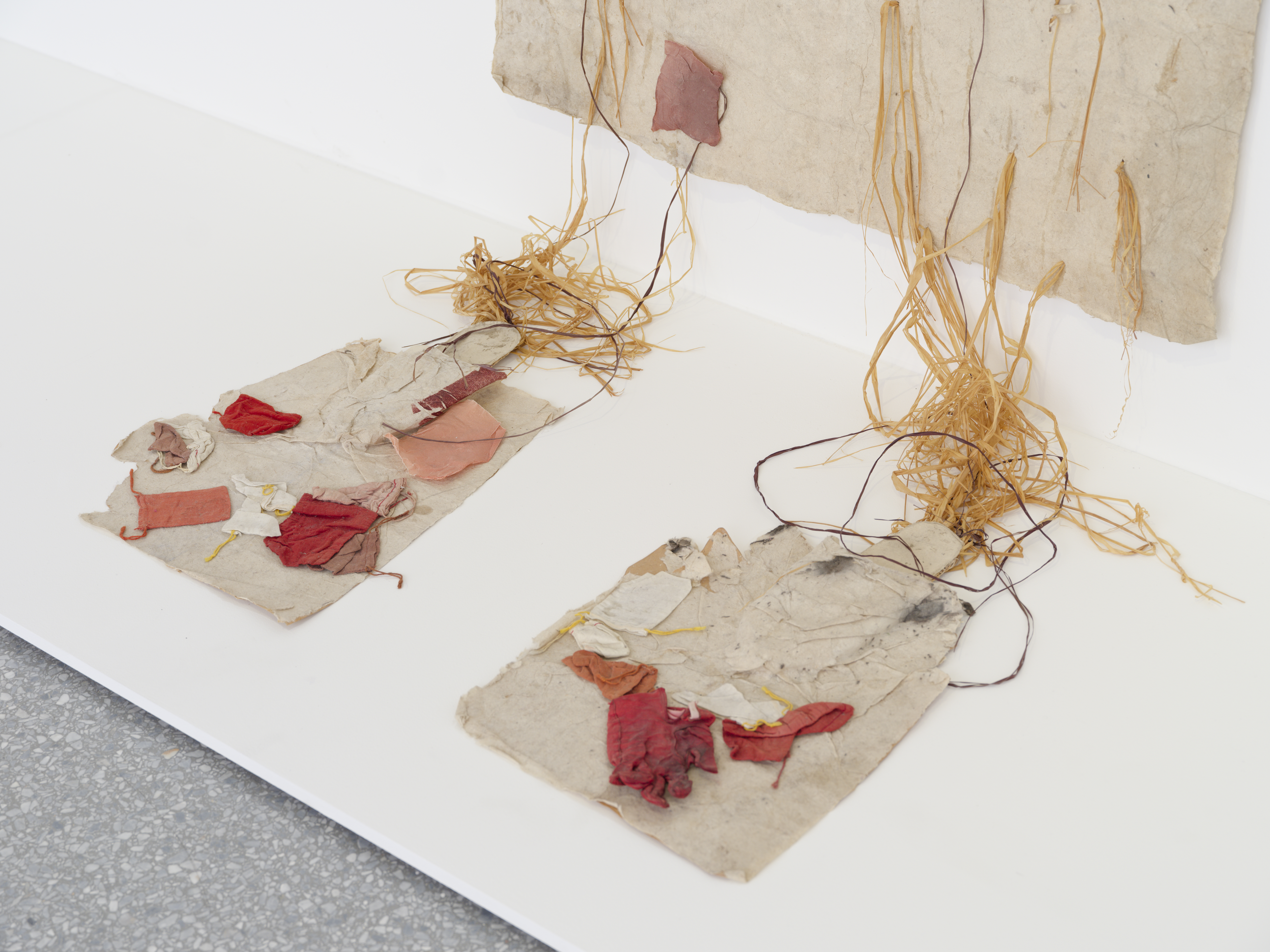 Photo : Alison Knowles, Broken Line with Slippers, 1983 (détail). Vue d'exposition Alison Knowles. Une rétrospective. MAMC+, 2025 ©Aurélien Mole / MAMC+