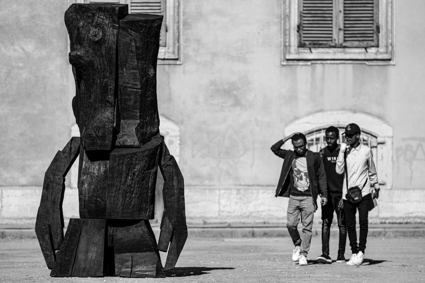 Sculpture en chêne, bois brulé et huilé