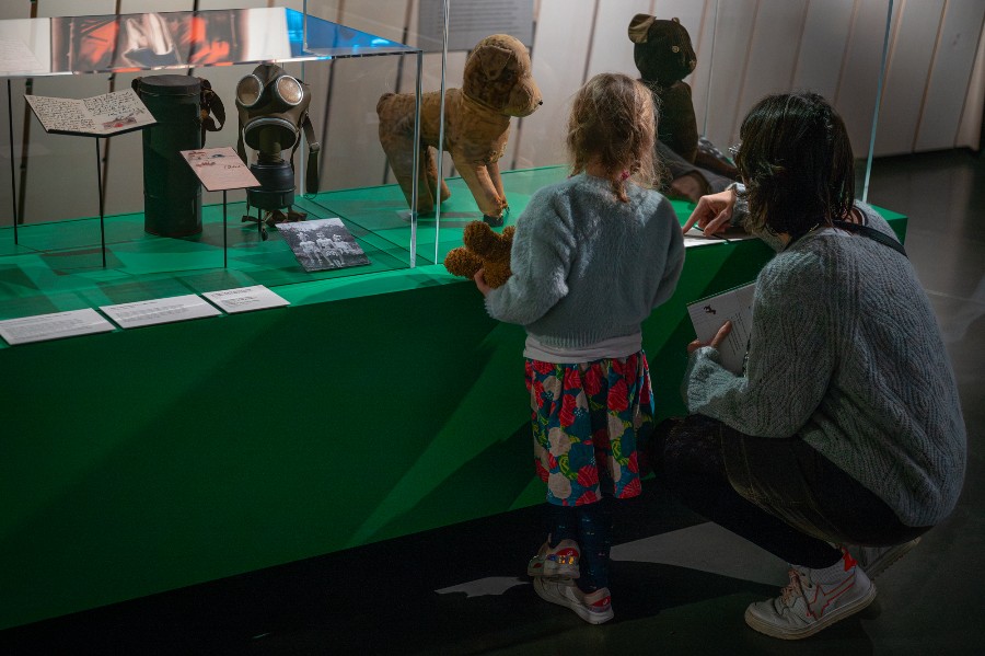 Histoire / L'exposition se présente comme une archéologie troublante de l'enfance, attentive aux strates matérielles où la guerre s'est déposée à hauteur d'enfant. Le jeu apparaît comme un rapport mimétique au monde, un territoire-seuil où l'imaginaire manipule la matière pour comprendre, répéter, apprivoiser. L'espace ludique représente également un lieu d'investissement normatif dans lequel figurines, images et règles incorporent les récits de l'ordre, de la patrie, du sacrifice. Malgré les tentatives d'appropriation, le jeu manifeste in fine son indiscipline, laissant faufiler l'imagination à travers les failles invisibles aux yeux adultes, célébrant une enfance résistante et en mesure de réinventer autrement le monde.