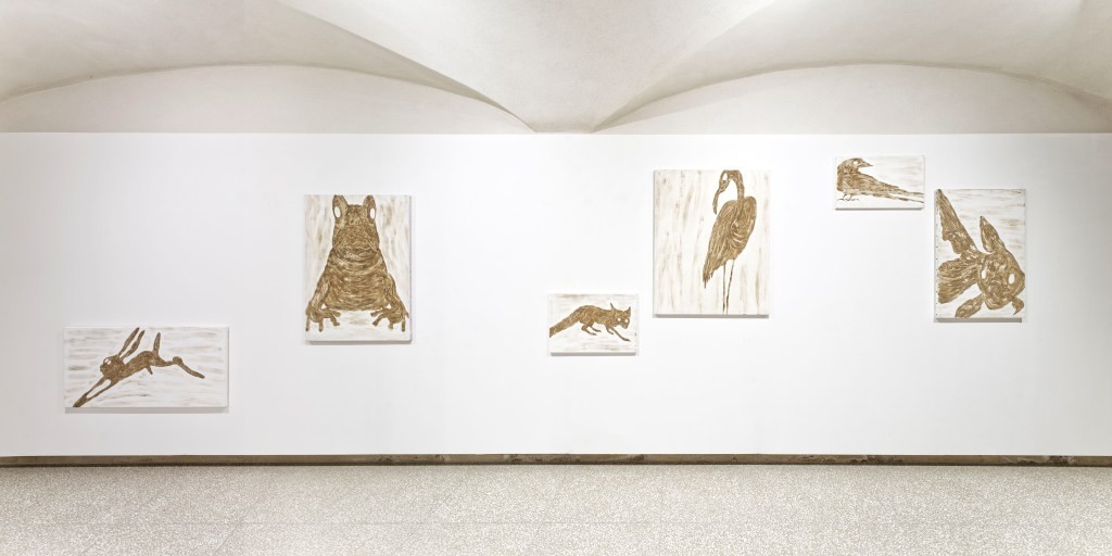 Dessin / L'exposition métamorphose l'acte de dessiner en une éruption de matières vivantes ou inertes où sang, terre, poussière, limaille, deviennent agents plastiques. Les œuvres convoquent une organicité brute engendrant des visages et des corps, mais également des symboles ou des édifices, tous marqués par l'incandescence ou le fantomatique. Dans ce flux, le dessin échappe à sa linéarité pour se faire texture, déchet réinventé, trace vivante : il se creuse et se prolonge, fragile et viscéral, jusqu'à interroger nos sens.