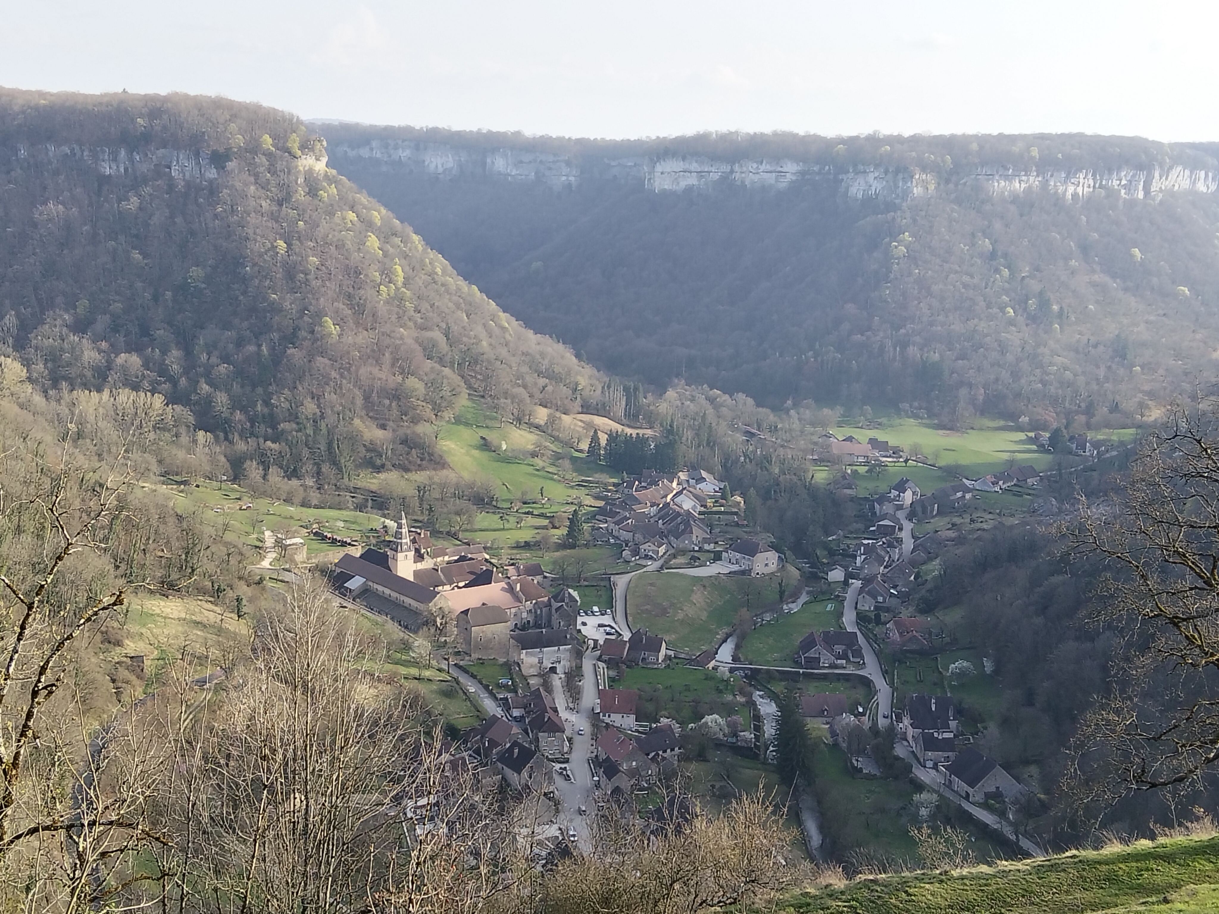 Baume-les-Messieurs (à ne pas confondre avec Baume-les-Dames, moins charmant, dans le Doubs) ne compte que 160 habitantes et habitants permanents mais tellement de visiteuses et visiteurs (600 000 par an) ! Le printemps est la période idéale pour s'y rendre. La percée du vin jaune est passée (fin janvier) et le soleil égaye ce cadre magnifique. De l'abbaye, site clunisien appartenant à l'ordre bénédictin bâti au tournant des premiers et deuxièmes millénaires, subsiste notamment un cloître, des logis et son église imposante avec un retable flamand du XVIe.