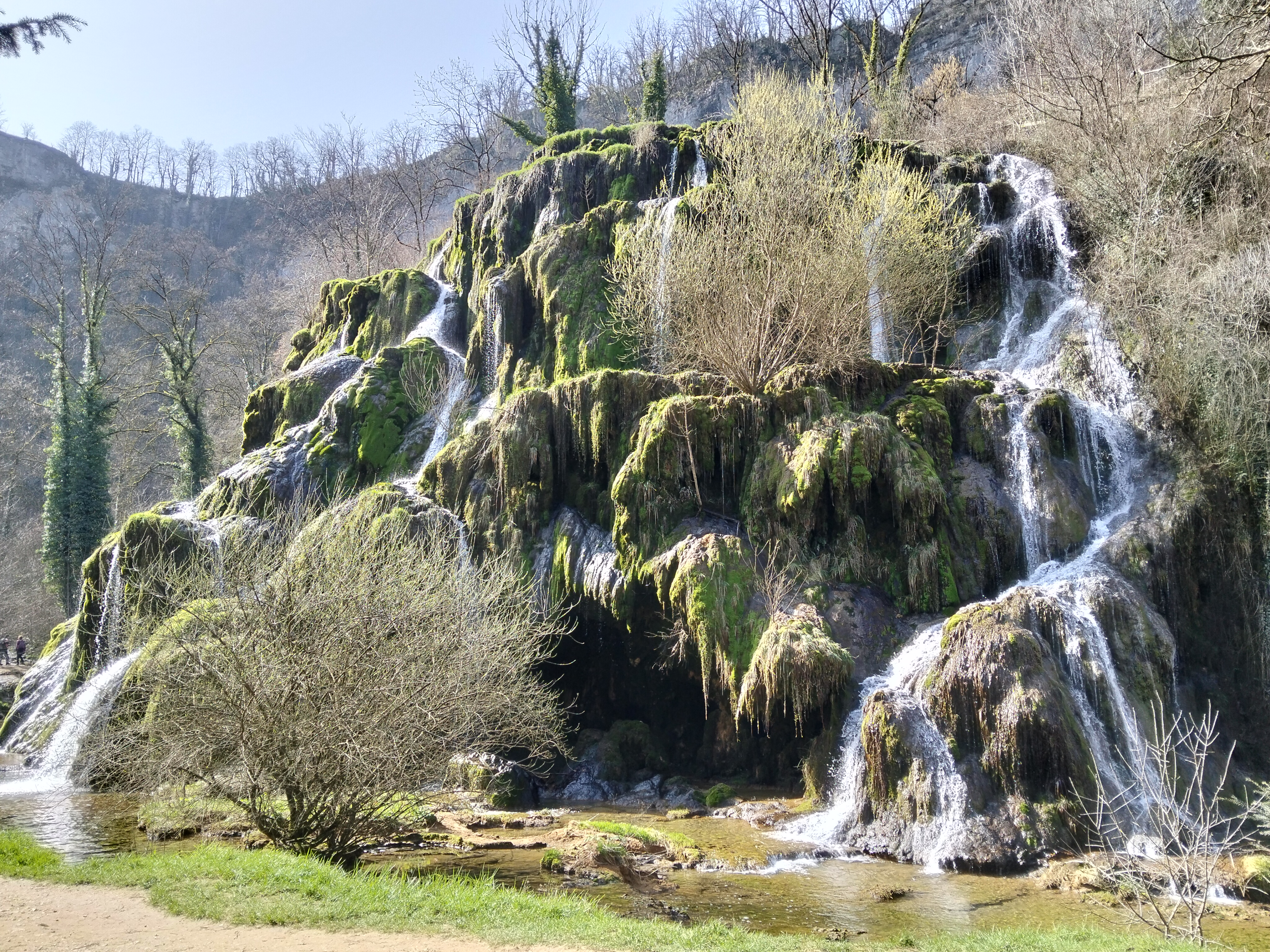 Et puis il faut randonner. En à peine 3h et 300m de dénivelé, on prendra la mesure du relief sans trop se fatiguer. Il faut partir de la chapelle Saint-Roch, ce mini-édifice couronné d'une croix, à 500 m de l'abbaye, et suivre les panneaux en direction de la grotte de Baume. Nous allons longer le ruisseau de la Seille dans une sorte de clairière qui nous mène à une cascade de tuf, une roche calcaire polie par l'eau du Dard. La cascade est souvent à sec en été.