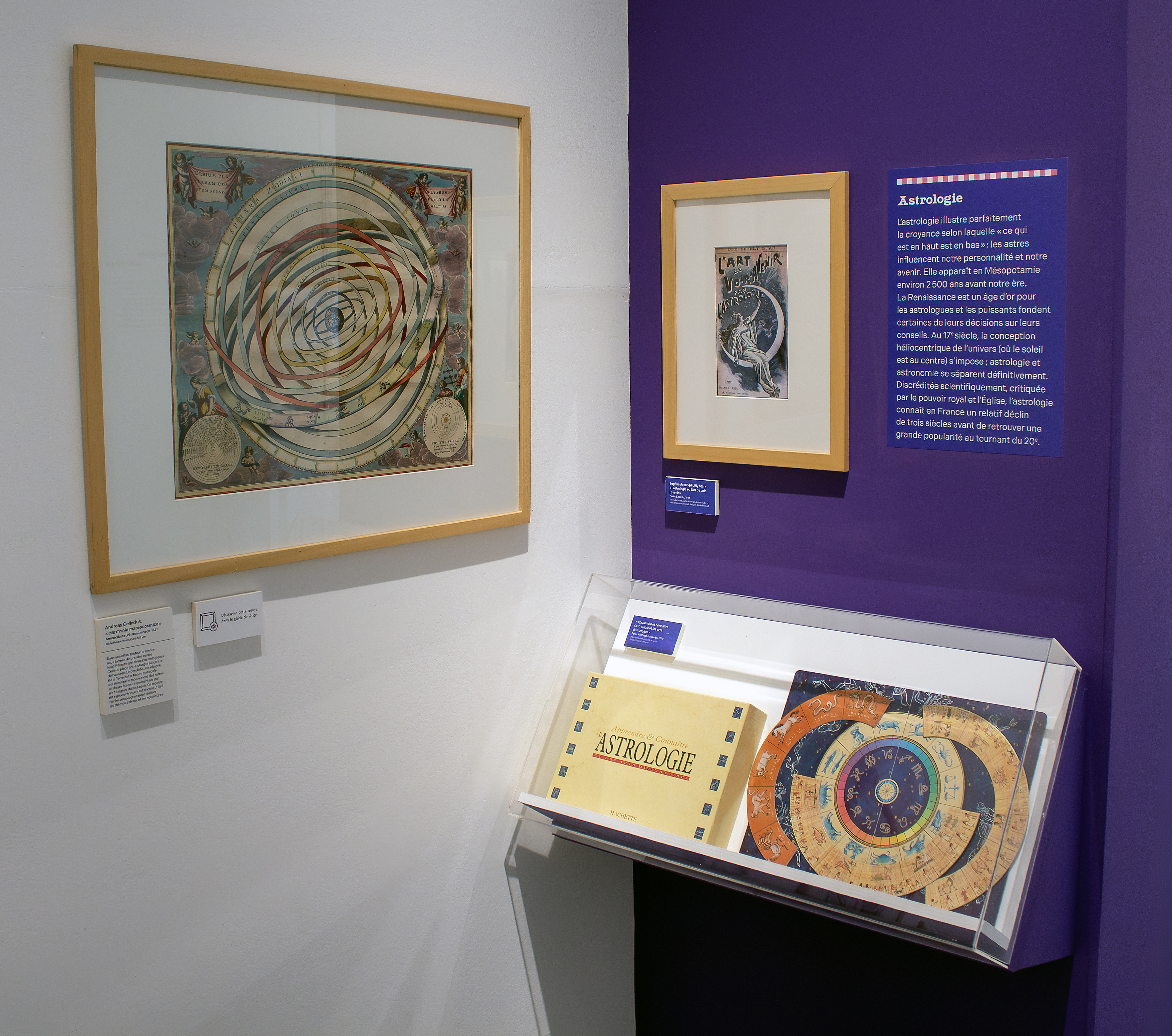 La dernière section s'attache à déconstruire une idée tenace : celle d'un ésotérisme réservé à quelques initiés. Ici encore, les objets jouent un rôle de transmission. Les almanachs, d'abord, dont certains tirages atteignent des dizaines de milliers d'exemplaires dès l'époque moderne, mêlent conseils pratiques et prédictions astrologiques. Leur présence dans l'exposition rappelle que ces savoirs circulent depuis longtemps à grande échelle, bien loin de toute confidentialité.
