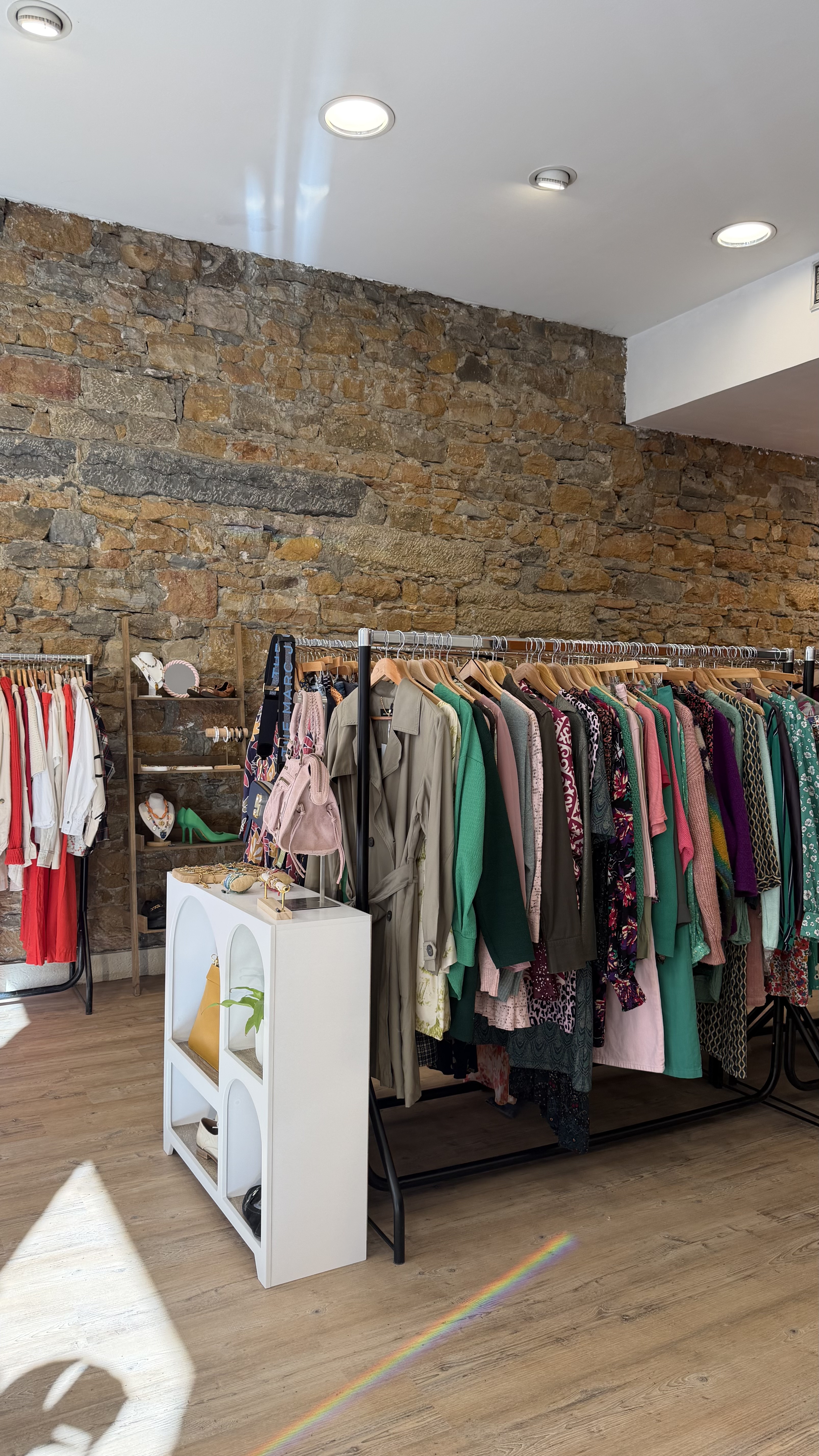 Si les vêtements occupent l'essentiel de l'espace, la boutique s'ouvre aussi à d'autres propositions. Quelques accessoires, sacs et chaussures soigneusement sélectionnés, mais aussi des bijoux de la créatrice Puva, installés en vitrine et sur les étagères. Une première incursion vers une offre élargie, que les fondatrices envisagent de développer. Dans le même esprit, des formats plus collectifs doivent progressivement prendre place : ateliers, dégustations, soirées thématiques. L'idée reste fidèle à ce qui se joue déjà au quotidien. « On aime bien recevoir. » conclut Estelle Bourrin.Â