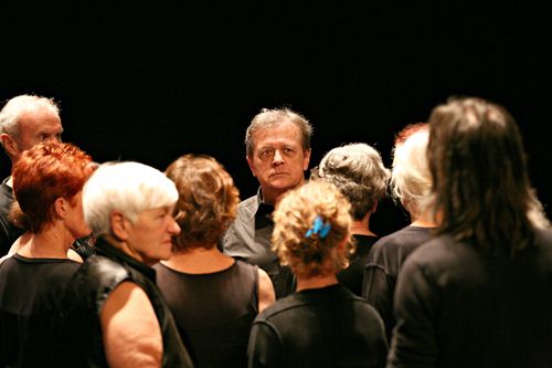 On aurait cru entendre Artaud dans son Théâtre de la cruauté, et on assistait alors à de singuliers courts-circuits entre les histoires du TNP, de la danse, de Chéreau, du Sacre du Printemps (dont on fêtera l'an prochain les 100 ans), de ce qui fît scandale en 1913 mais ne le fait plus, de ce qui fît modernité mais ne le peut plus... Épuisement. C'est dans la neige que se termine le récit de Nijinski et que démarre alors la musique du Sacre de Stravinski et s'ébranle le "tournez manège" de vingt-quatre danseurs amateurs âgés.